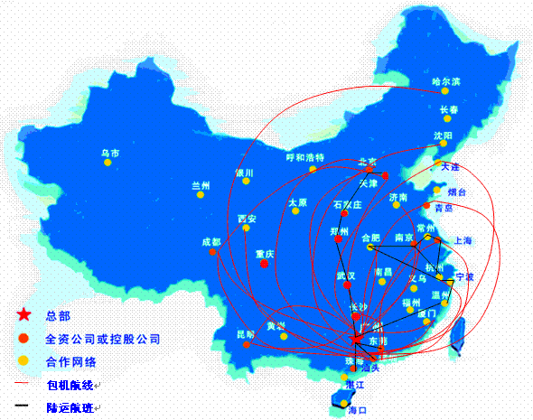 一、航空运输:辐射21 个省市、24条包机包舱航线