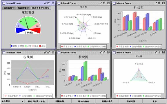 对客户关心的敏感数据,可以定制专门的指标,对指标数据进行多个组织和多个区间的查询分析,提供指标横向和纵向多维分析。可以提供指标趋势分析、指标单位构成分析、指标期间构成分析、指标同期对比分析、单位同期对比分析、单位指标分析、预警指标分析等七种分析功能。可以设置图表类型、形状。如面积图、圆饼图、柱形图等。