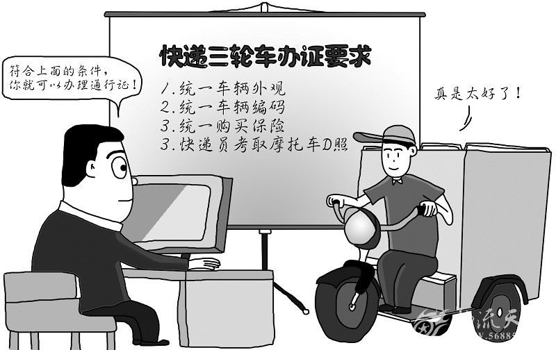 “快递三轮车要办证咯!”近日,在吉安市各大品牌快递公司负责人的朋友圈里,你一言我一语讨论新近落地的快递三轮车通行证新政。“统一车辆外观、统一车辆编码、统一购买保险、快递员统一考取摩托车D照。”吉安市邮政管理局负责人透露,在吉安市城区,只要满足上述条件即可向交管部门申请快递三轮车通行证。