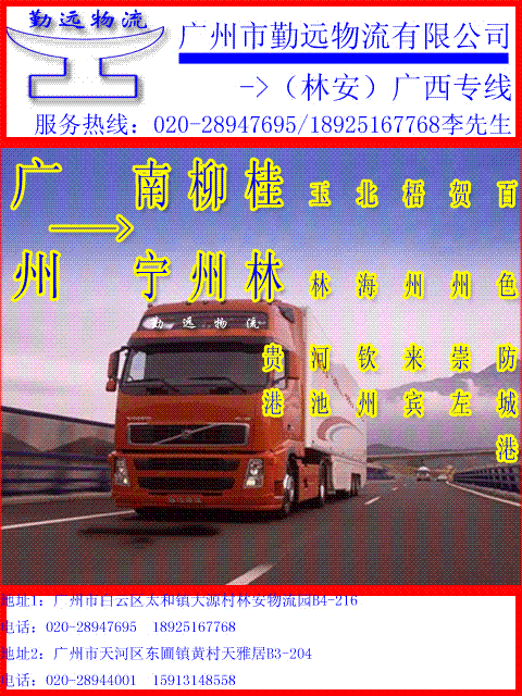 广州到柳州物流货运专线(广州市勤远物流有限公司)